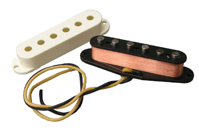 The singlecoil pickup is the oldest and most basic pickup type of all. The most common singlecoils are the ones used in Fender Telecaster and Stratocaster -guitars, where six slug magnets are stuck into two plates made from vulcanised fibre. The coil is then wound around the magnets.