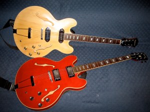 Tässä yksi kuva minun Epiphone Casinosta ja minun japanilaisesta Kasuga ES-335 -kopiosta (valmistettu joskus 70/80-luvun taitteessa):