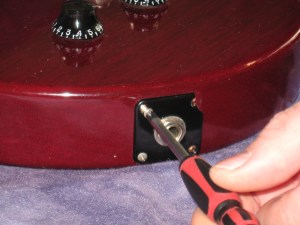 Joissakin tapauksissa jakki sopii vain yhdessä tietyssä asennossa takaisin kitaraan. Jos näin on, täytyy avata mutterin vielä kerran ja asemoida jakkia uudestaan.