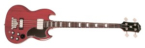 At the moment Gibson offers two USA-made SG-basses: The SG Standard Bass Faded comes in Gibson’s faded finish and sports dot inlays in the fretboard. The SG Standard Bass is gloss-finished and features crown-style inlays. Both basses use a Jazz Bass -style volume-volume-tone-setup in place of the original four controls plus rotary switch.