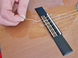 There’s no real scope for intonation-adjustment on a classical guitar, so once the strings are on you’re ready to go.