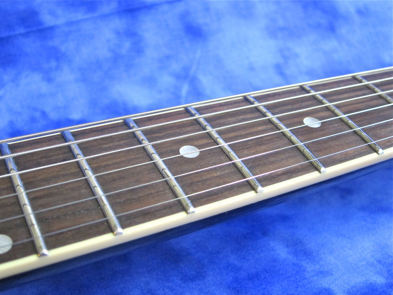I probably will give the frets a little more care later, as they feel a little rough beneath the strings right out of the box. I also had to file the 10th fret down carefully by a fraction of a millimetre beneath the high e-string, as the fret was a little high in this spot, causing sitar-like rattling. Certainly nothing a complete rookie would be able to diagnose or rectify easily.