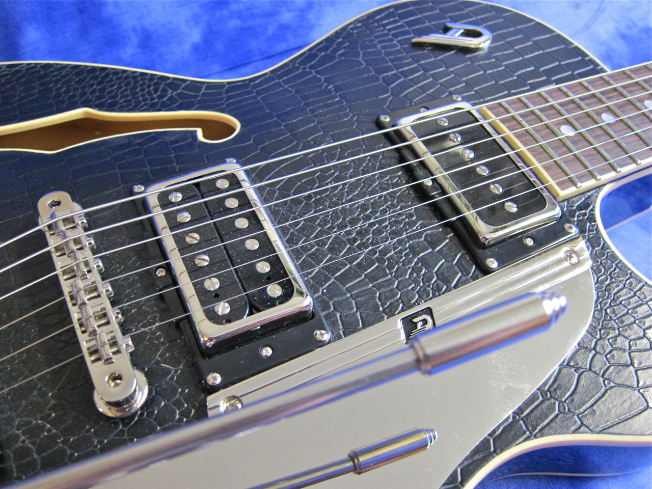 Mikrofoniksi on valittu Duesenberg Domino -malli, joka on P90-tyylinen yksikelainen mikrofoni humbuckerkoossa.