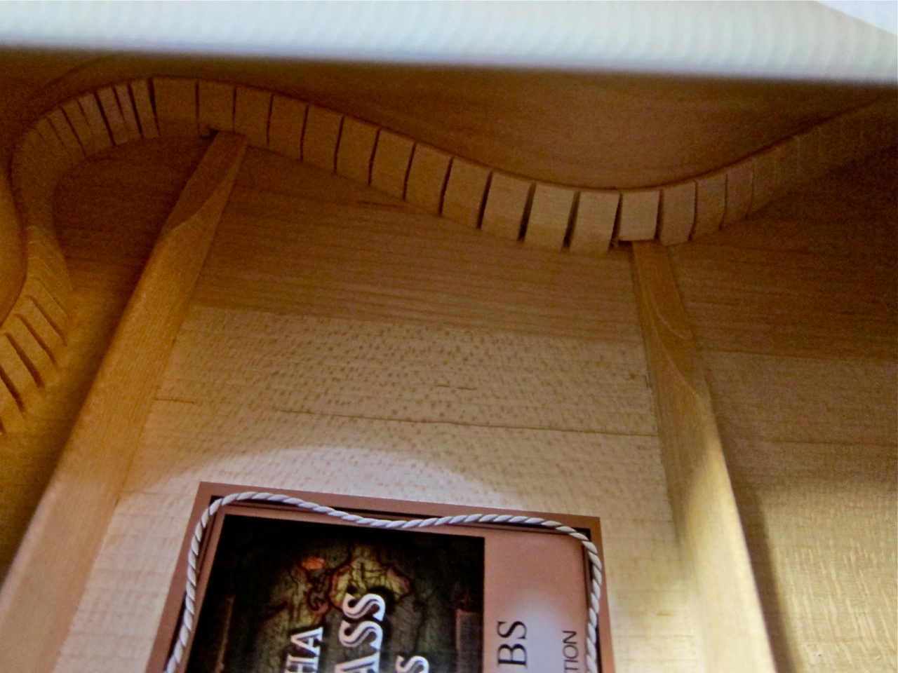 Lisää siistiä työtä löytyy reunalistoituksesta, kaikuaukon rosetista ja läpinäkyvästä plektrasuojasta.