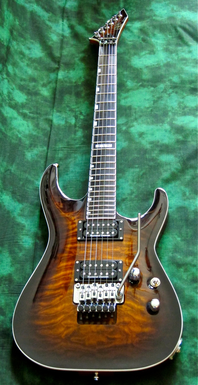 …sekä pramea ESP Horizon FR-II SD Seymour Duncan -humbuckereilla.