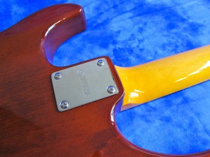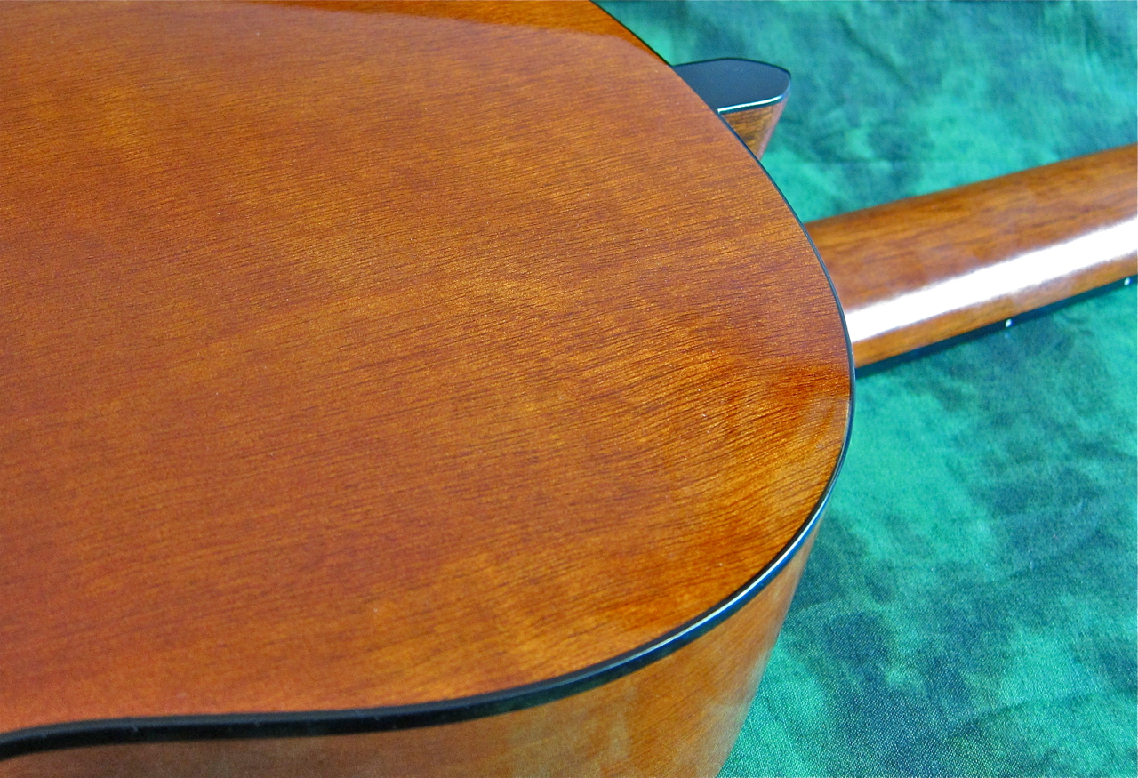 Sama kiiltävä lakkaus ulottuu myös soittimen vaahterakaulaan ja mahonkirungon selkäpuoleen.