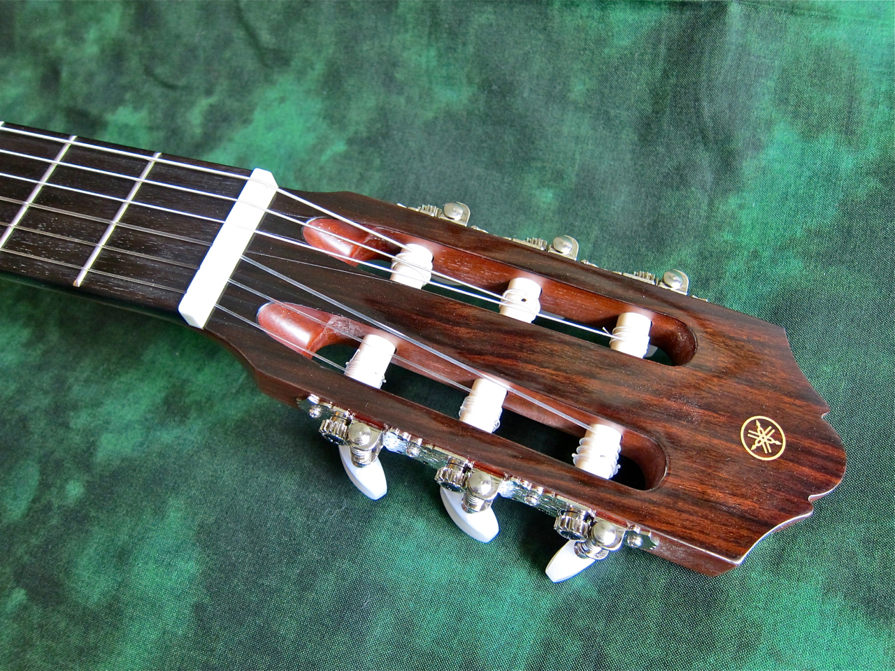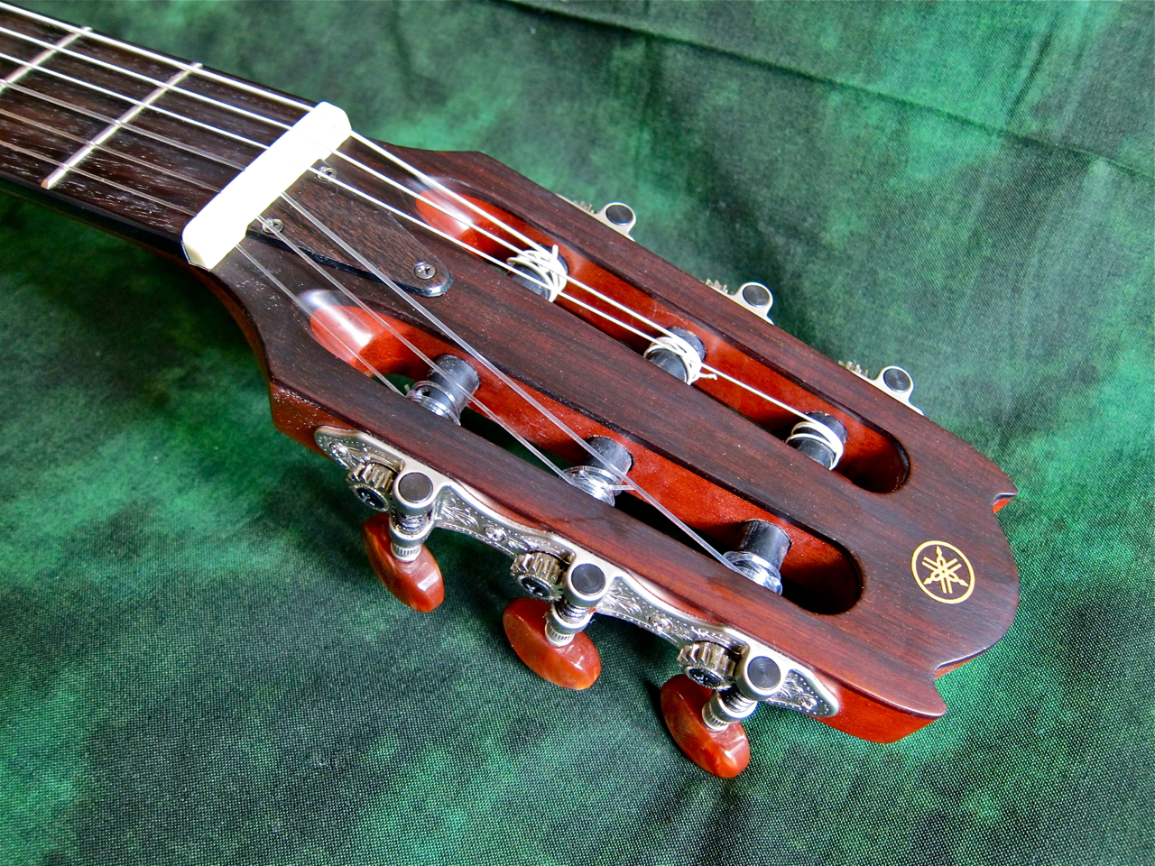 Even though this model isn’t equipped with a vibrato bridge, Yamaha have nonetheless chosen to use a set of Grover locking tuners. The biggest advantage of the Grover units is that you don’t need any tools to change strings. You simply thread the string through the tuning post, and then turn the tuner head. This first engages the locking mechanism, and once the string is locked, the tuning post starts to turn.