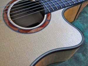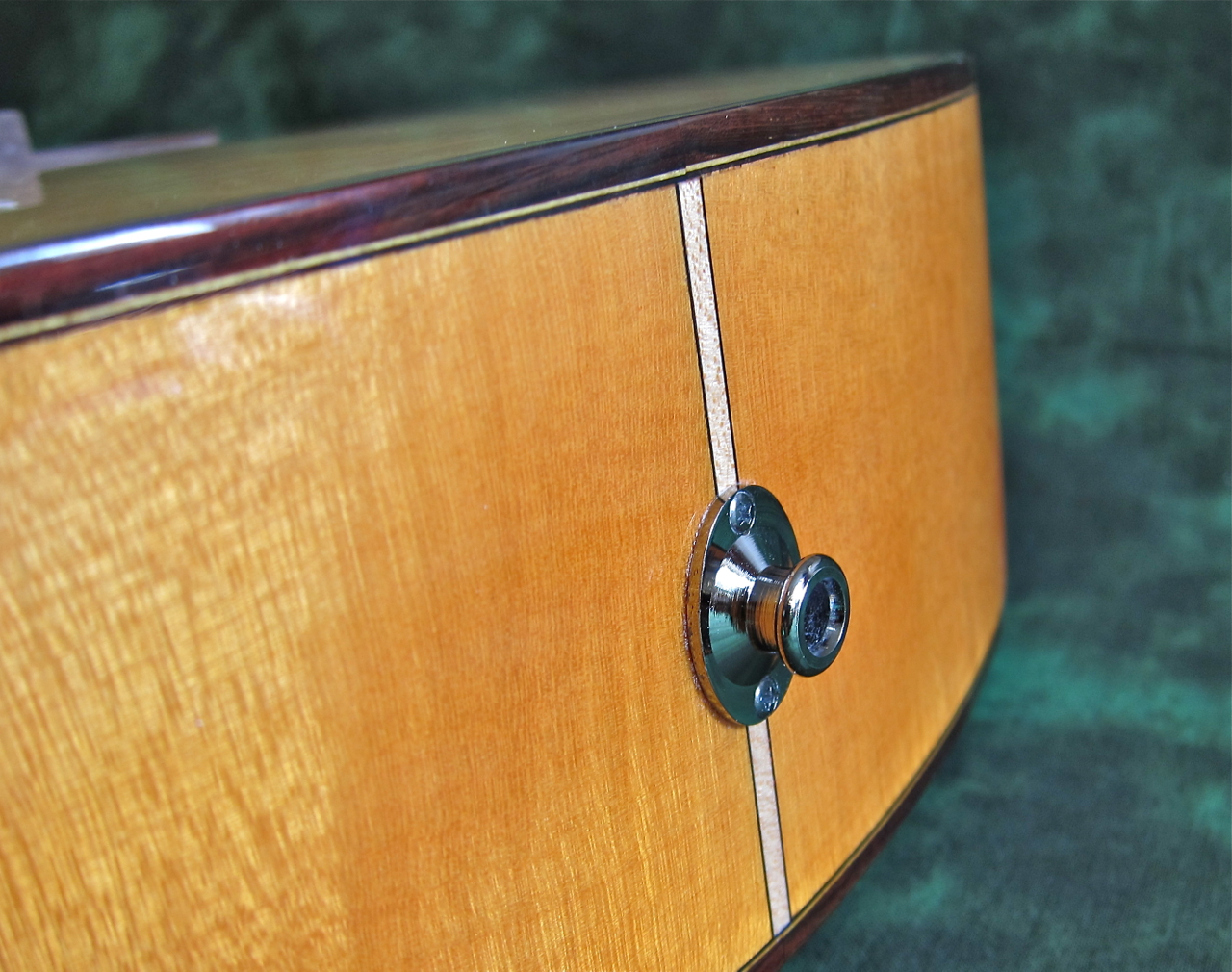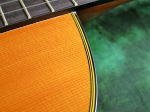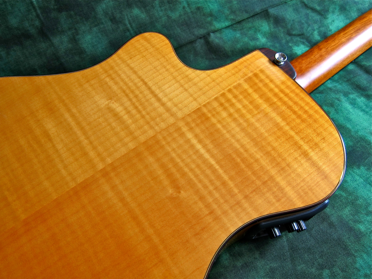 A breath-taking view for most guitar connoisseurs – the famous ”fake” binding, which is achieved by leaving the rim of the maple top unstained.