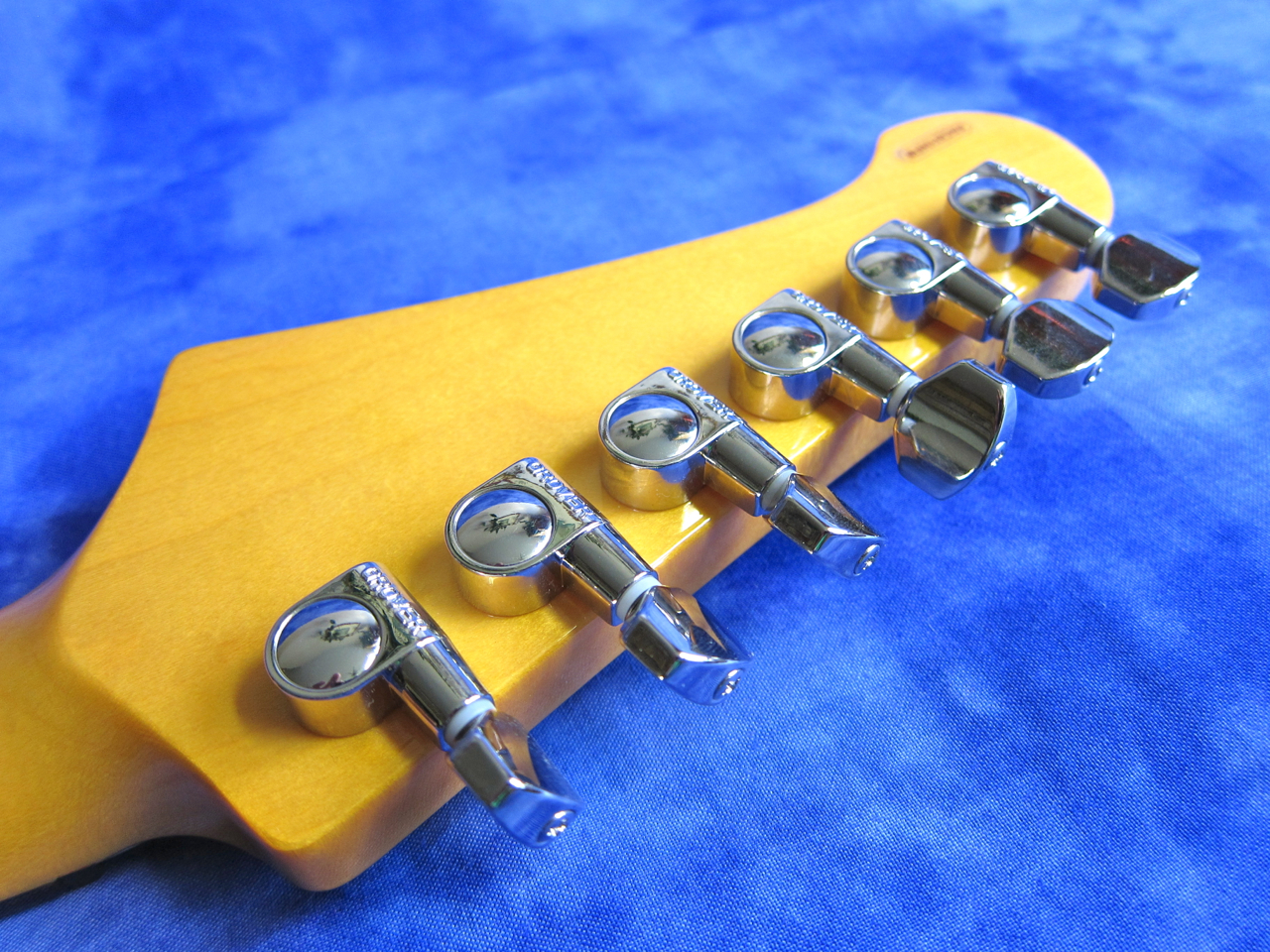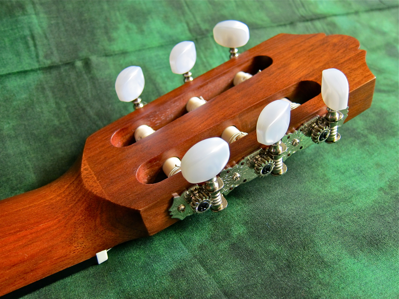…ja kauniit, laadukkaat virittimet sopivat kitaran ilmeeseen erittäin hyvin. Myös NTX:n lapa on liimattu kaulaan.