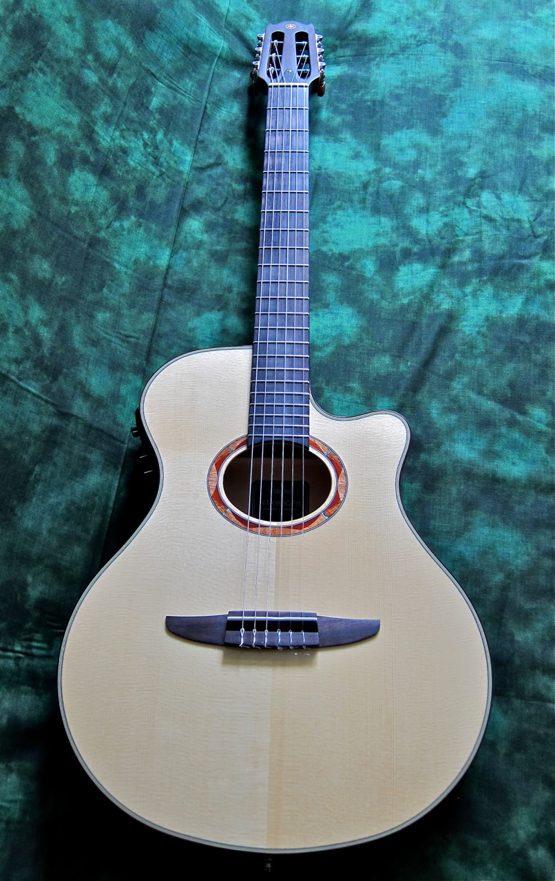 Yamaha NTX900FM taas on mielenkiintoinen hybridimalli – mikitetty nylonkielinen kapeammalla kaulaprofiililla.