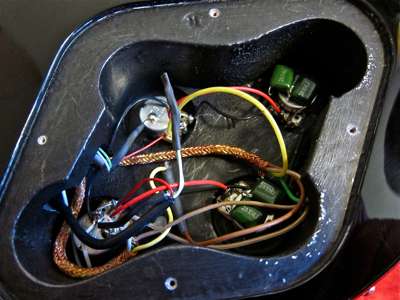 We’re talking about a set-neck solidbody, made almost completely from African mahogany (note: the cover plates look strange in this pic, because they still have their protective foils stuck on top).