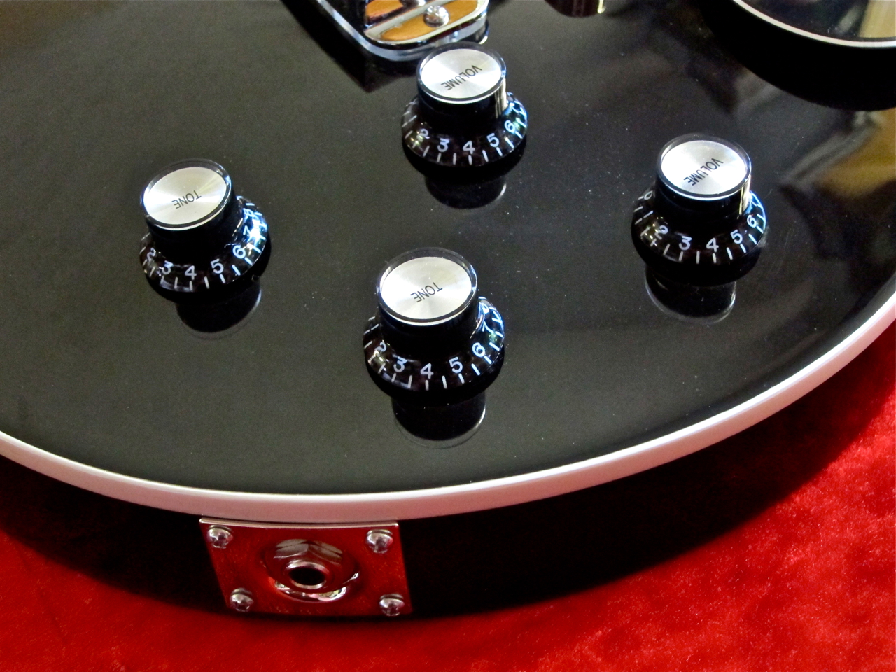 The control knobs work in the standard Les Paul -fashion, with each pickup being provided with its own set of volume and tone controls.