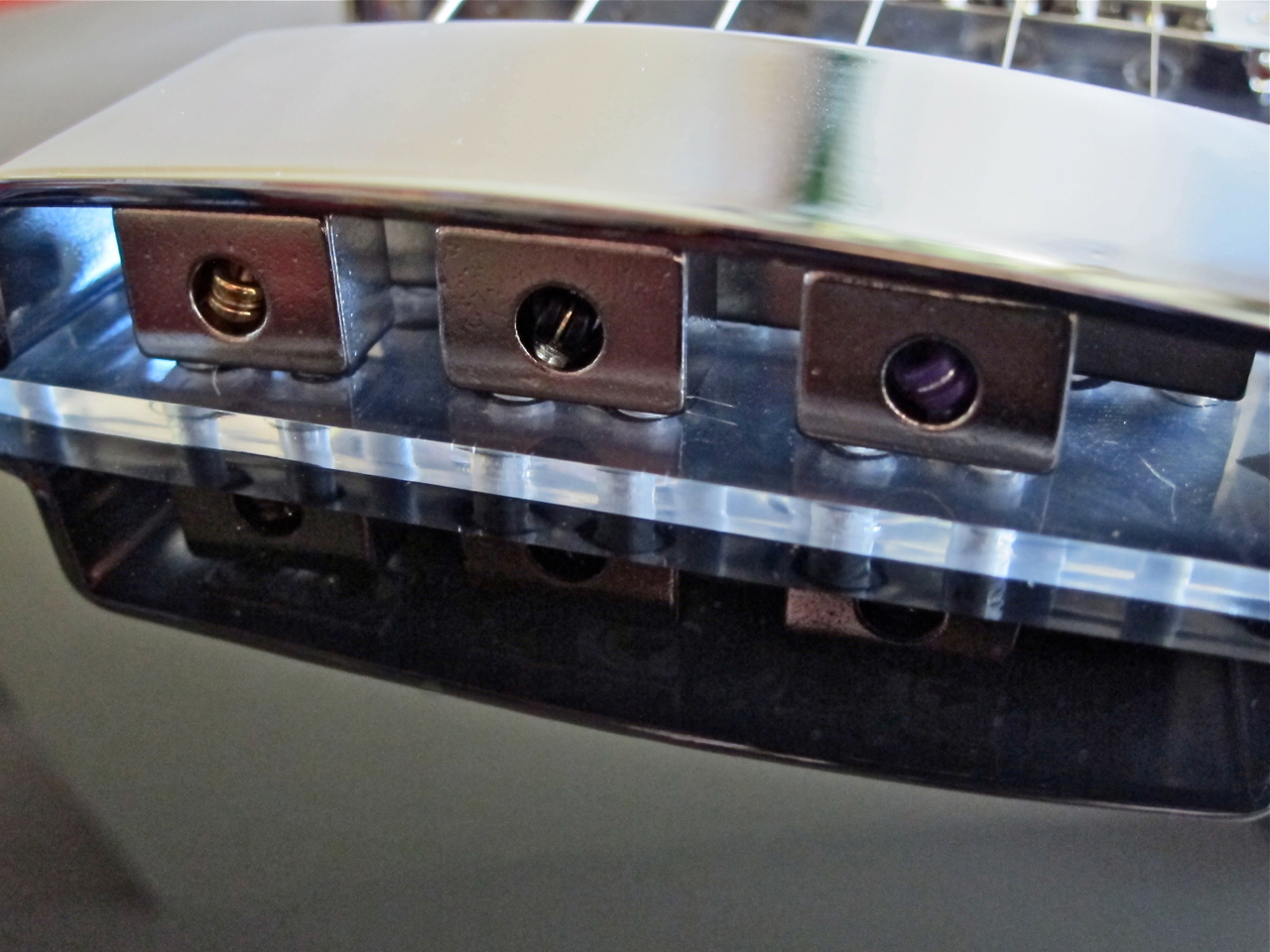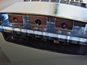 The Swede features Hagström’s idiosyncratic tailpiece, using individual string retainers mounted onto a perspex plate.