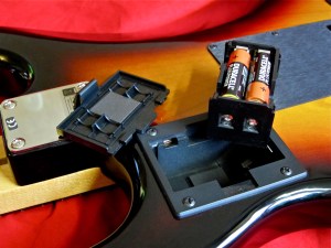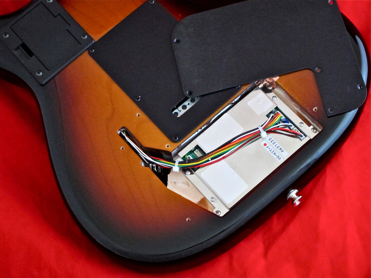 VG-Straton leppärunkoon on lisätty takapuolesta kaksi lokeroa, joista isompi on Rolandin mallinnuselektroniikkaa varten ja pienempi paristoille.