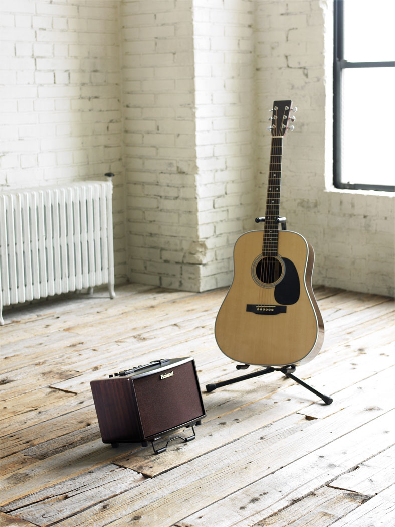 Rolandin AC-33RW on firman pienikokoisin kombovahvistin akustiselle kitaralle ja laululle. Se toimii sekä omalla virtalähteellä (kuuluu pakettiin) että kahdeksalla AA-paristolla, jolloin sen käyttöaikaa on – käytetystä paristotyypistä riippuen – jossain kahdeksan ja yhdeksän tunnin välimaastossa.