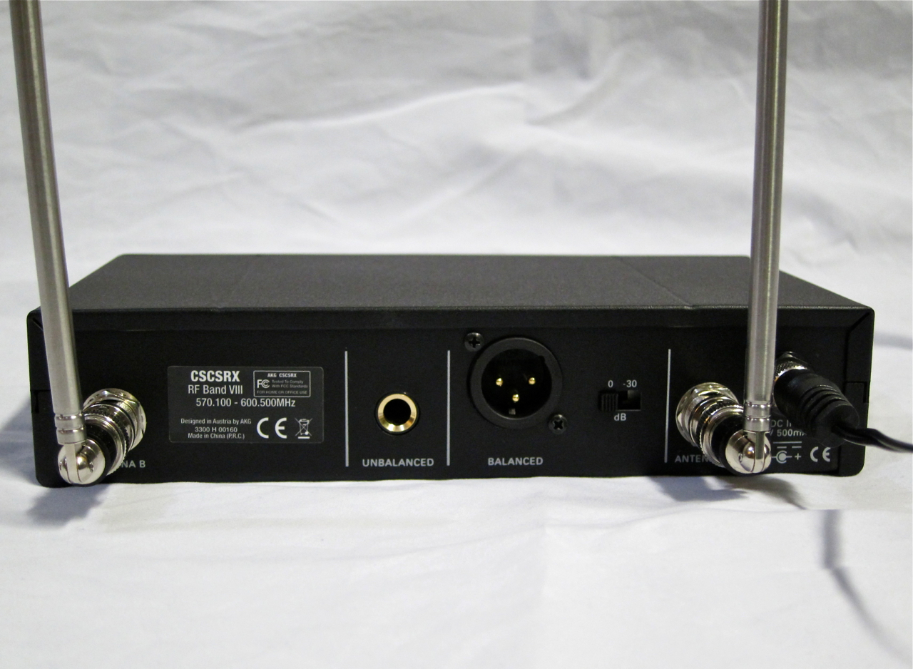 The AKG SR470 receiver is a so-called diversity receiver. This means it uses two discreet antennae with their own gain stages for reception. The unit’s electronics constantly monitor the radio signal coming off each antenna and automatically (and completely silently) switches to the antenna which offers the best radio signal quality at any given moment.