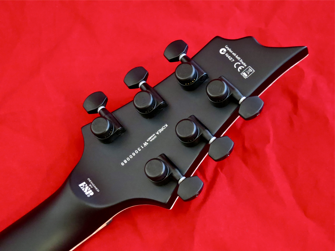 As a card-carrying member of the LTD Deluxe-range the instrument is adorned with multiply binding and pearl inlays.