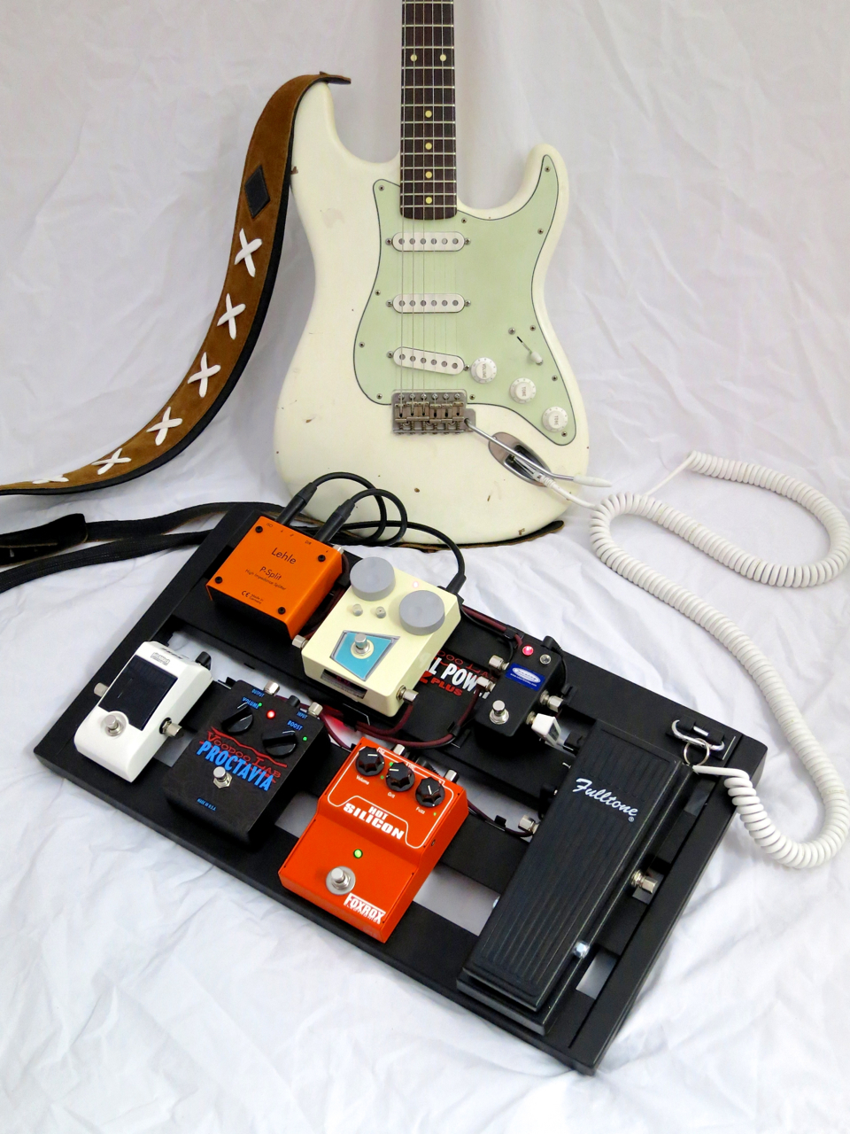Valkoinen Vox-kierrejohto on tyylipuhdas valinta Hendrix-aiheiseen pedaalilautaan.