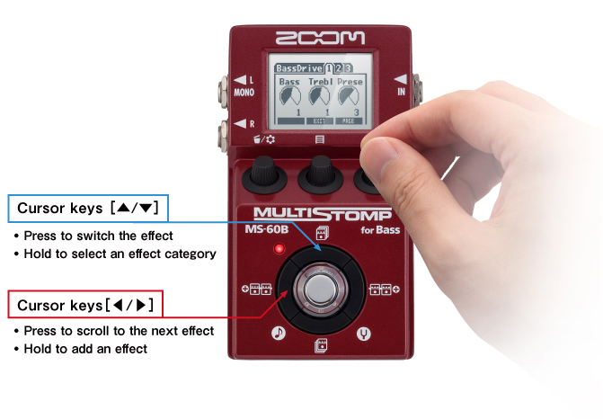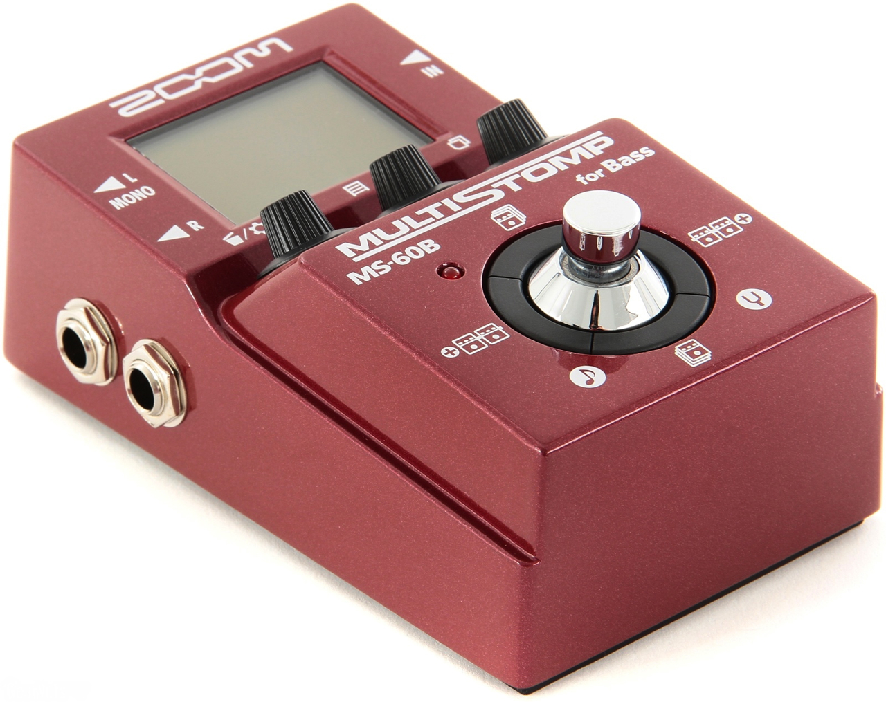 Zoom MS-60B (hinta alle 100 €) on MultiStomp-malliston sähköbassoille kehitetty malli. Punaisesta rasiasta löytyy 50 vapaasti editoitavaa ohjelmapaikkaa, ja jokaisessa efektiohjelmassa (patch) voi ketjuttaa maksimissaan neljä efektiä peräkkäin. Tarjolla on 58 eri efektityyppiä kompressoreista modulaatioefekteihin ja viiveistä vahvistinmallinnuksiin.