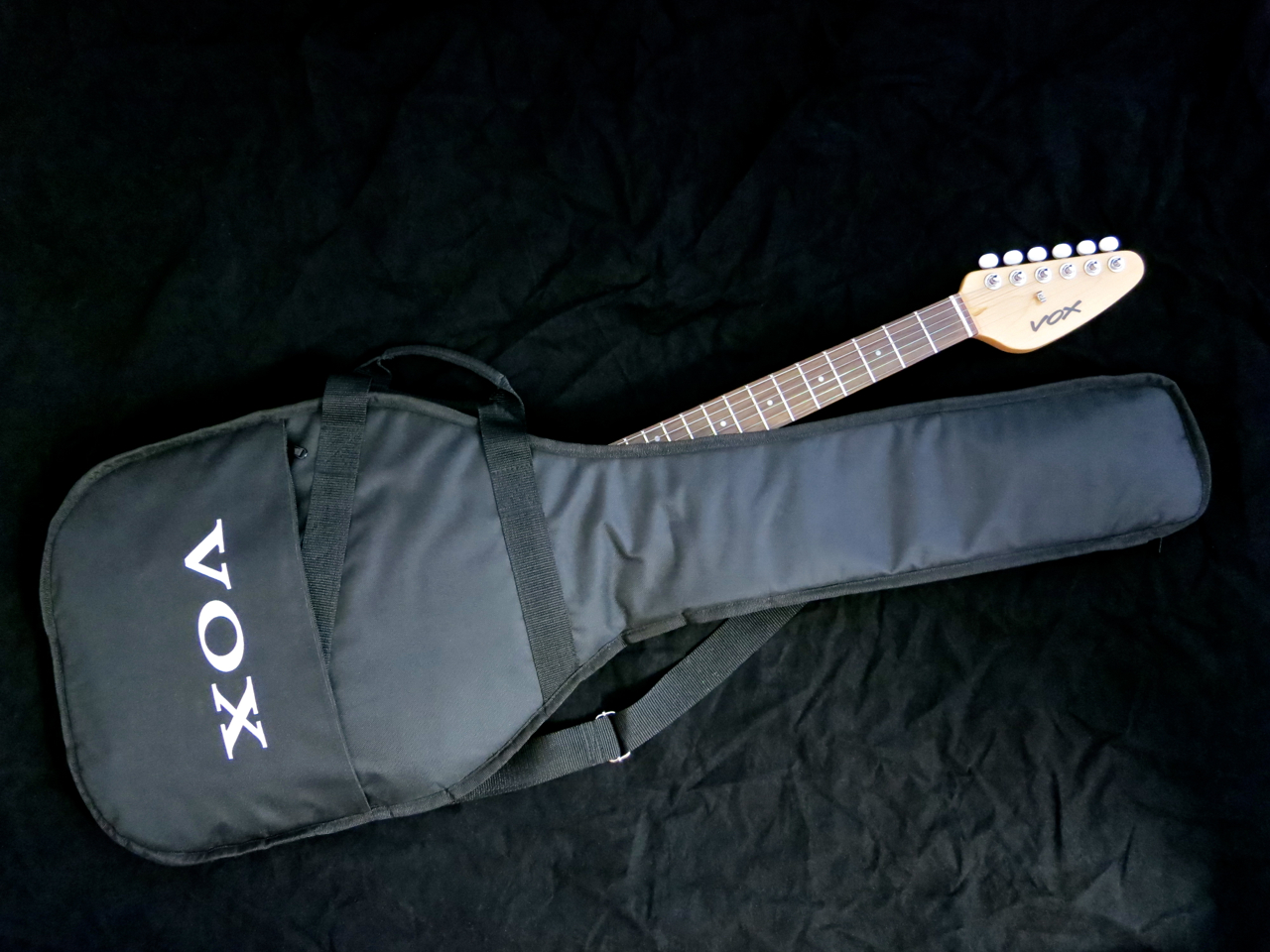 Vox Mark V on sylissä hieman vastahakoinen tapaus, ja hyvän soittoasennon löytämiseen menee tovi. Kevyt testiyksilö roikkuu kuitenkin hihnassa todella hyvässä tasapainossa.