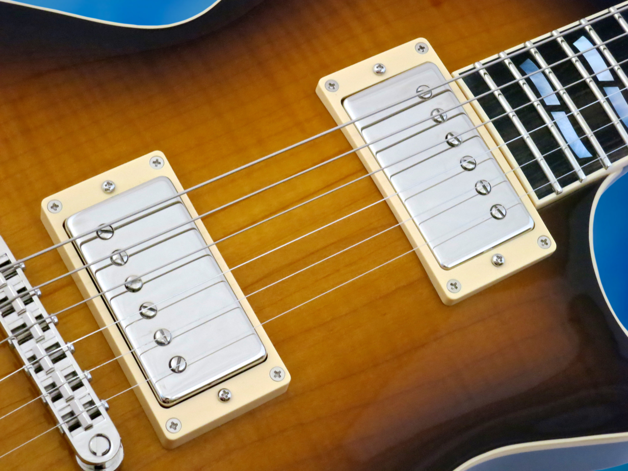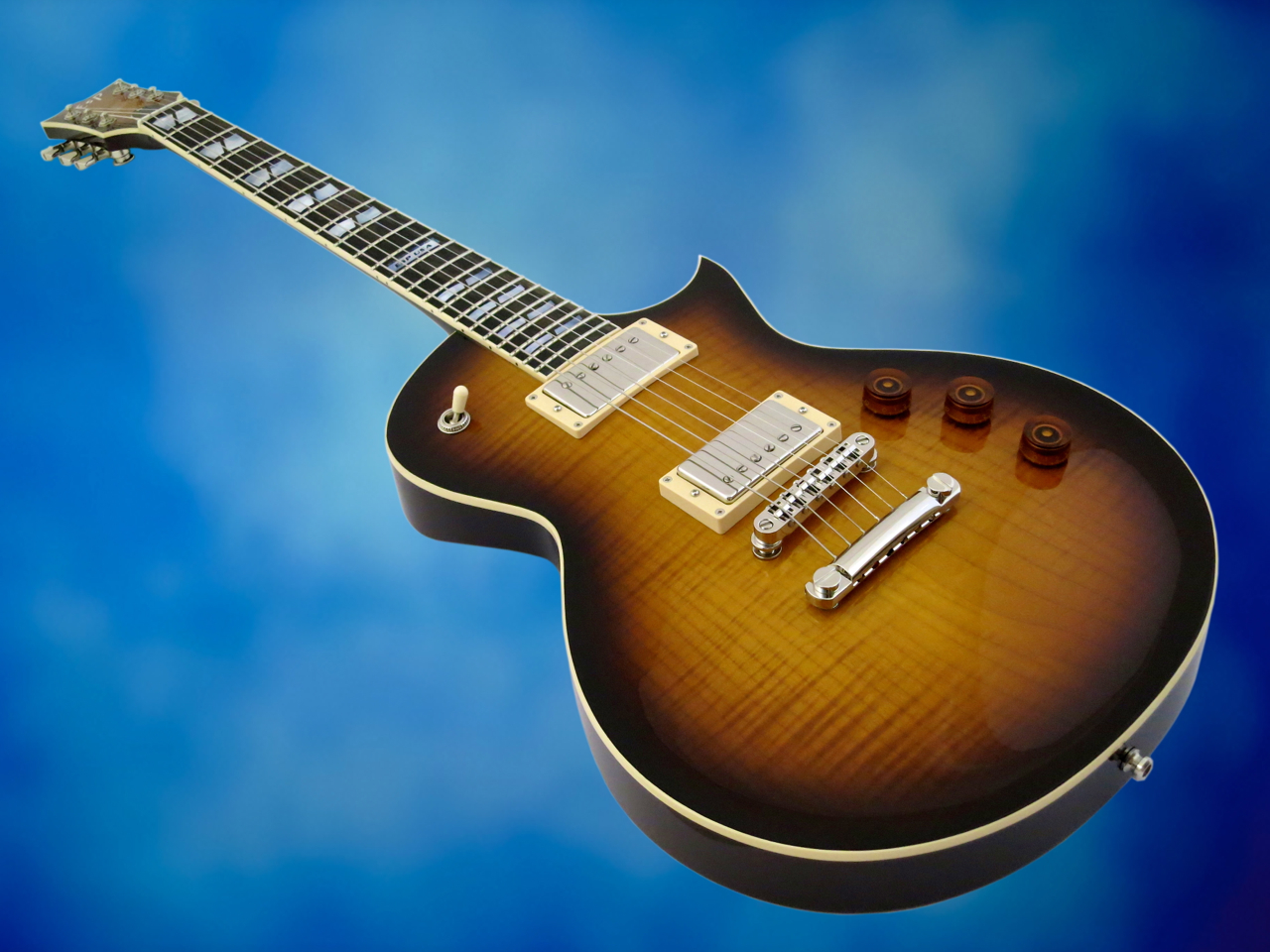USA Eclipsen reunalistoitetun lavan etupuolen loimuvaahteravaneri on viimeistelty samaan Tobacco Sunburst -väritykseen kuin rungon vahvasti kaareva vaahterakansi.