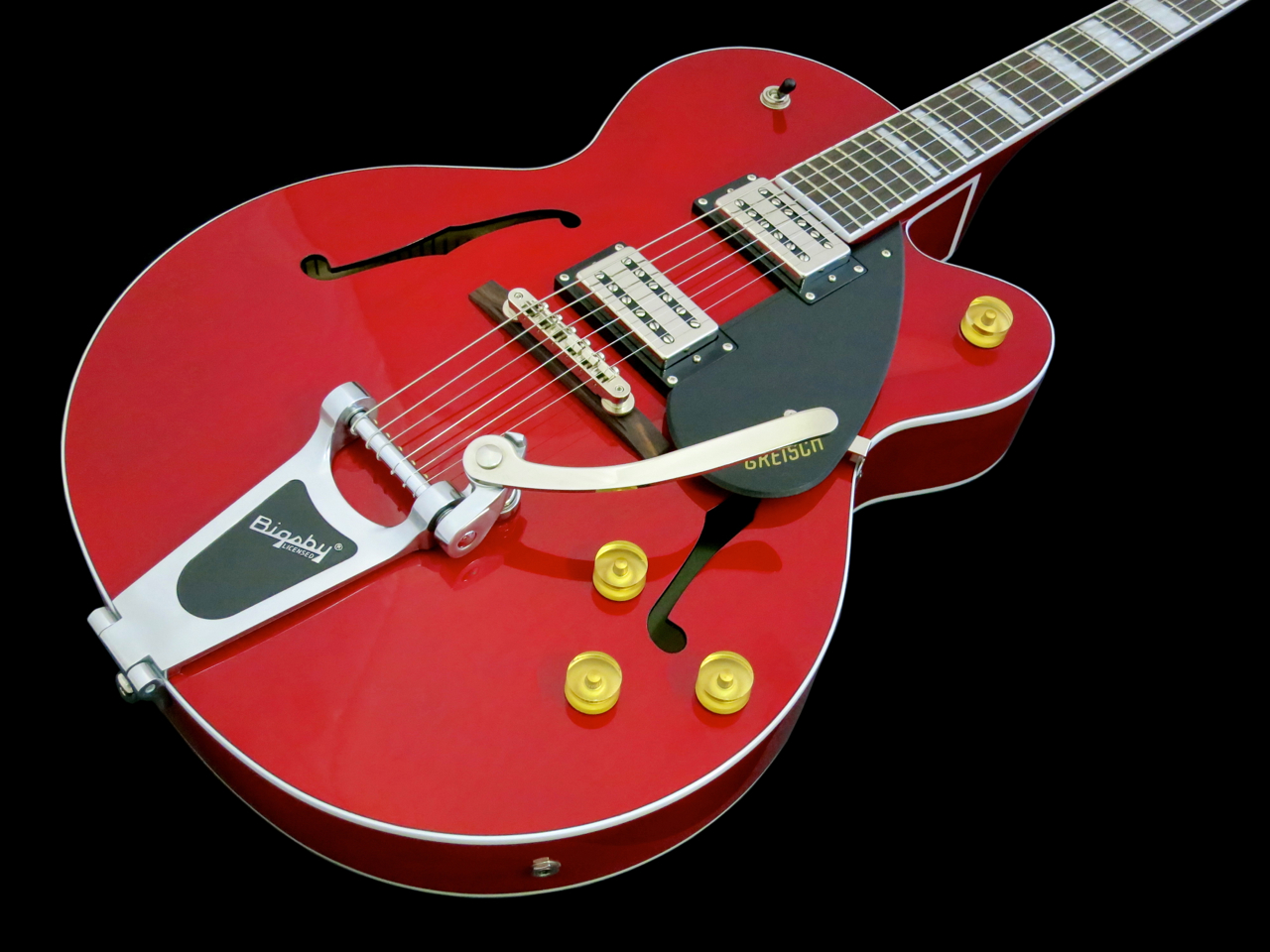 Bigsbyn laadukkaat Lightning-sarjan vibratot valmistetaan kauko-idässä. Bigsby B60 on tarkoitettu nimenomaan tällaiseen isokoppaiseen orkesterikitaraan kuin Gretsch G2420T:hen.