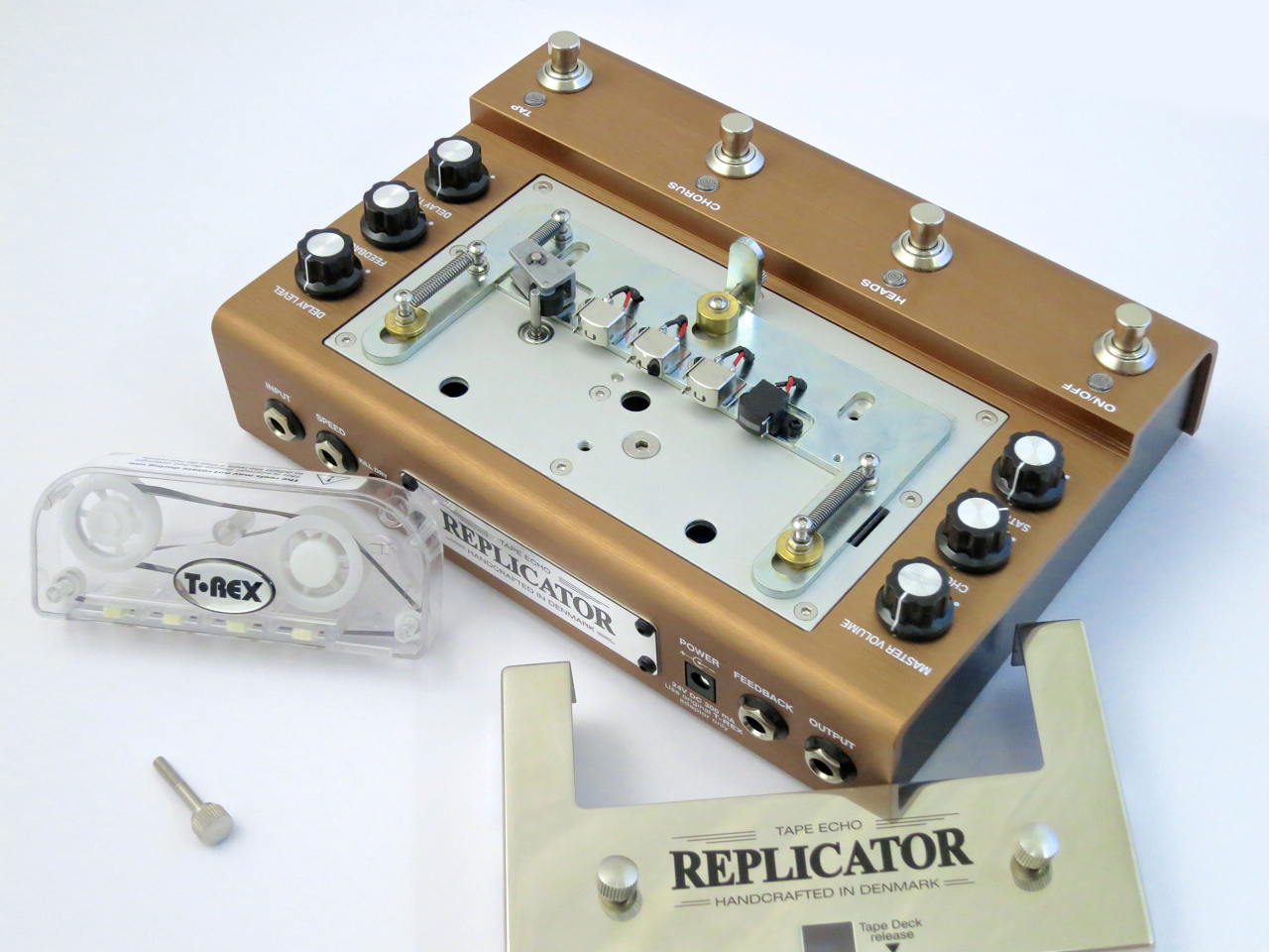 Tanskalainen efektivalmistaja T-Rex aiheutti aikamoisen kohun sen uudella efektipedaalilla. Replicator-niminen laite on nimittäin Tanskassa käsintehty aito nauhakaiku. Nauhakaiut ovat jo sinänsä nykyään melko harvinaisia laitteita, mutta T-Rexin uutuus tarjoaa ensimmäisenä maailmassa digiefekteistä tutun tap tempo -ominaisuuden.