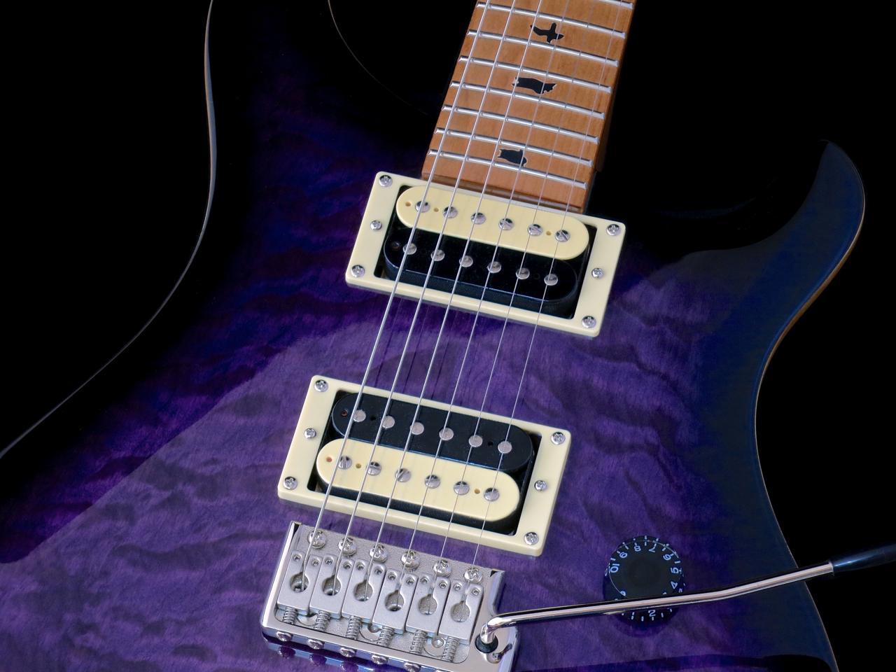 Otelautaan on siististi istutettu 24 medium-kokoista nauhaa, sekä mustat versiot PRS:n kuuluisista linnuista. Sulavasti muotoiltu satula on tehty itsevoitelevasta muoviseoksesta.