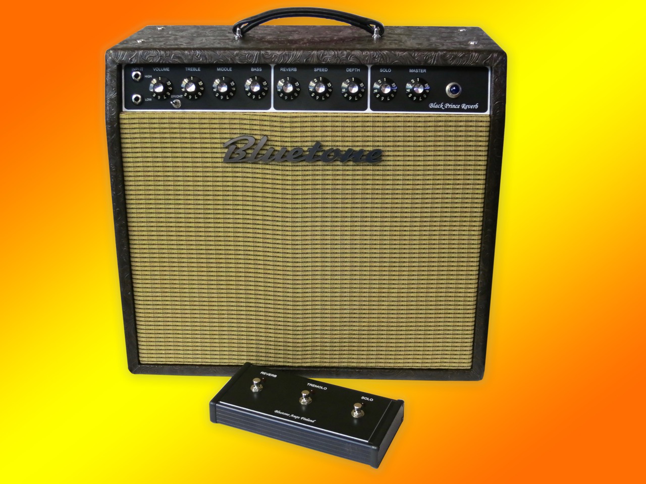 The Bluetone Black Prince Reverb is a handwired and handcrafted all-tube combo, made here in Finland. In light of this you can only call the price tag very fair, coming in several hundreds of euros lower than Fender’s current handwired ’64 Princeton Reissue.