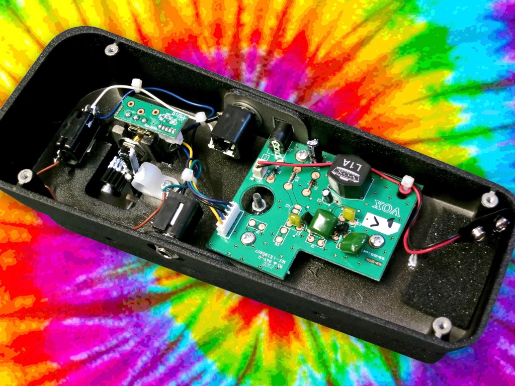 Electronically the Vox V845 is virtually identical to a vintage Vox-wah, apart from being built with a couple of PCBs and modern components.