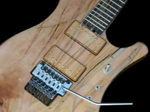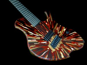 Raato Guitarsin risteytys Gibson Explorer- ja Flying V-malleista näyttää mielestäni todella tyylikkäältä. Rungon pääaines on lehmus, johon on lisätty päärynäpuusta tehty pohja, sekä loimuvaahterainen kansi.