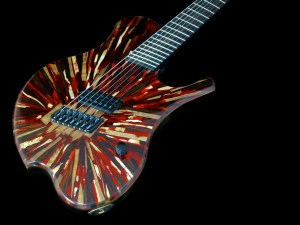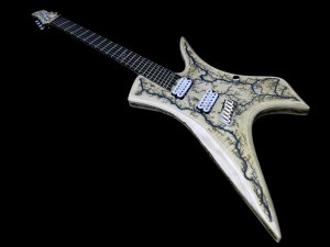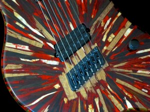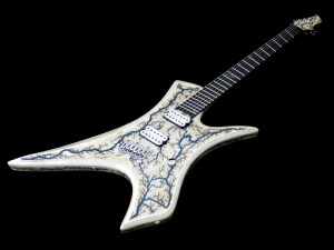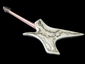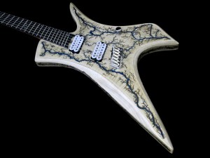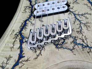 Putting Lichtenberg figures into wood is a relatively dangerous procedure (”don’t try this at home”), in which an electrical current is carefully used to produce lightning-like burns in the wood. You can take a look at the process in this Raato Guitars VIDEO.