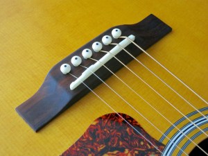 The Farida M2’s top nut and compensated bridge saddle are both made from a man-made bone substitute.