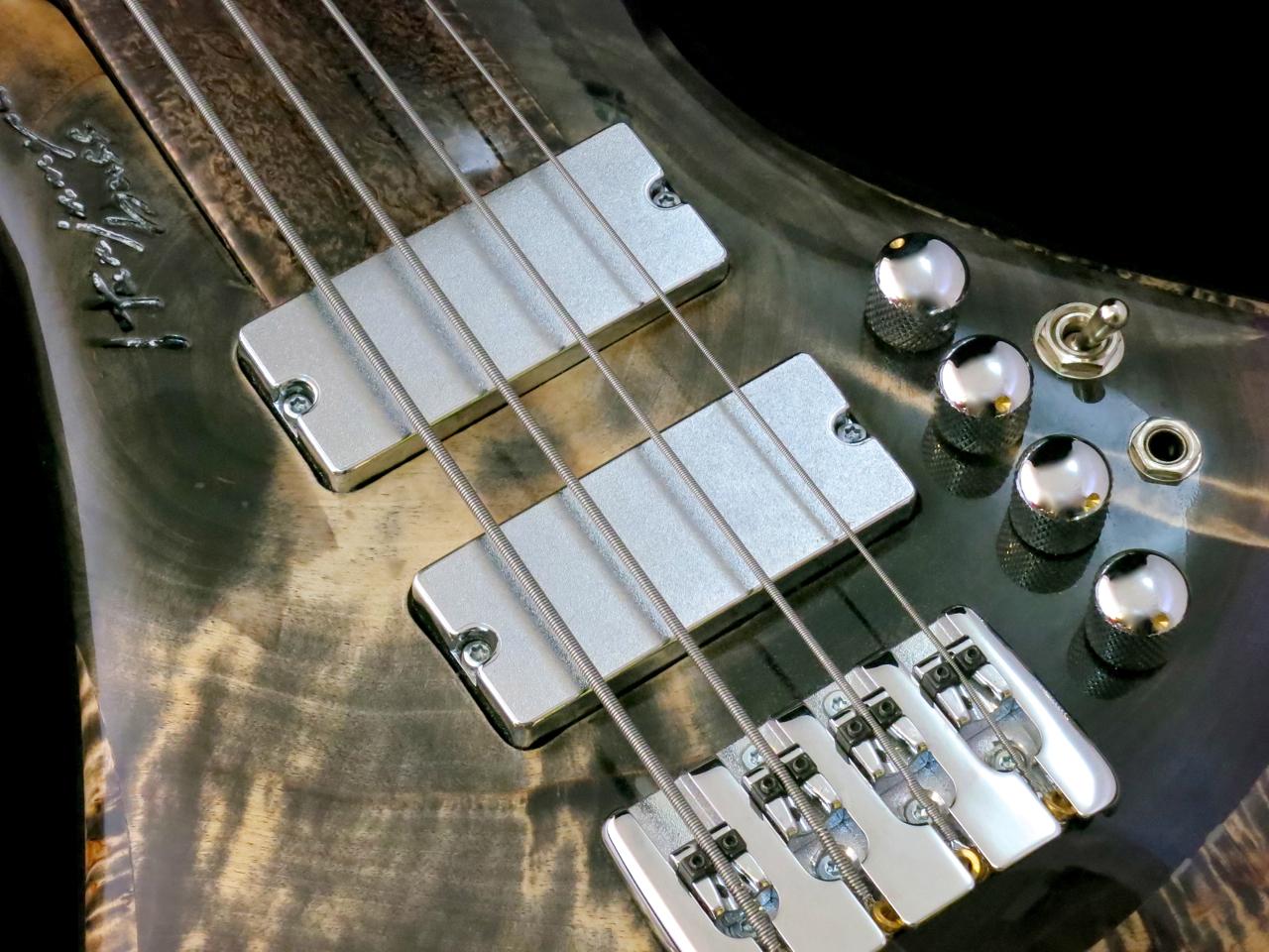 The Violinbirch comes equipped with a Music Man-style large humbucker. The controls are passive and comprise master volume and master tone.