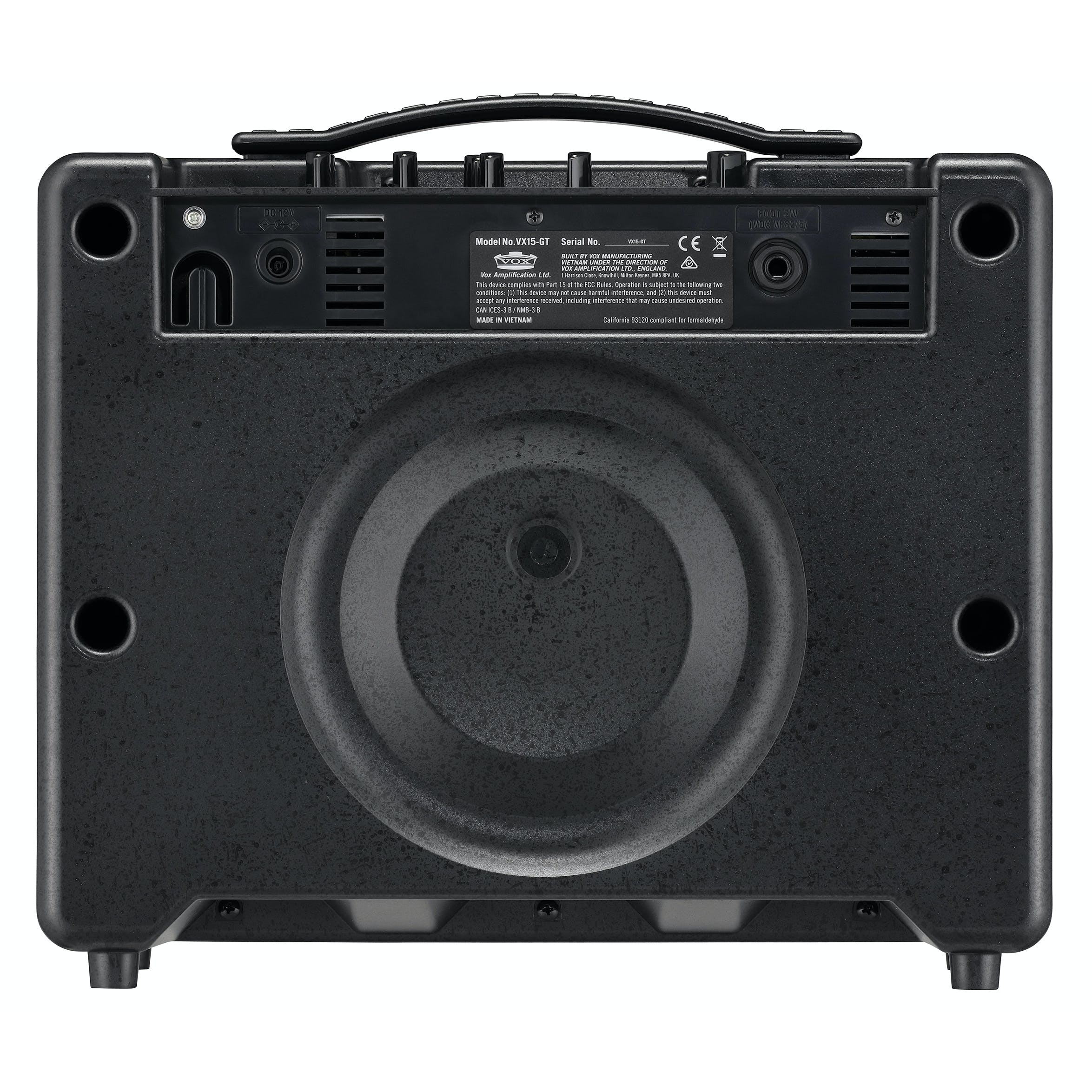 The Vox VX15-GT’s astonishingly low weight (of just under four kilos) is achieved by using a special cabinet that is molded completely from ABS-plastic, as well as the use of a modern, lightweight power amplifier.