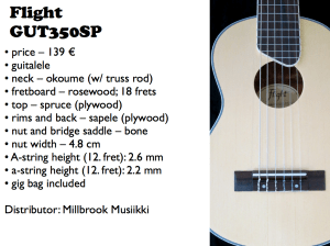 Flight GUT350SP ei ehkä ole kovaäänisin kaikista kokeilemistani guitaleleista, mutta sillä on hyvin kaunis ääni. Myös Flightin intonaatio on mukavasti kohdallaan.