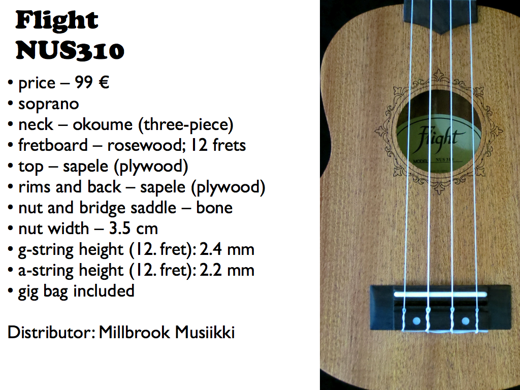 Minun mielestäni Flight NUS310 on mainio perussopraano vintage-tyylisellä soundilla ja hyvällä intonaatiolla.