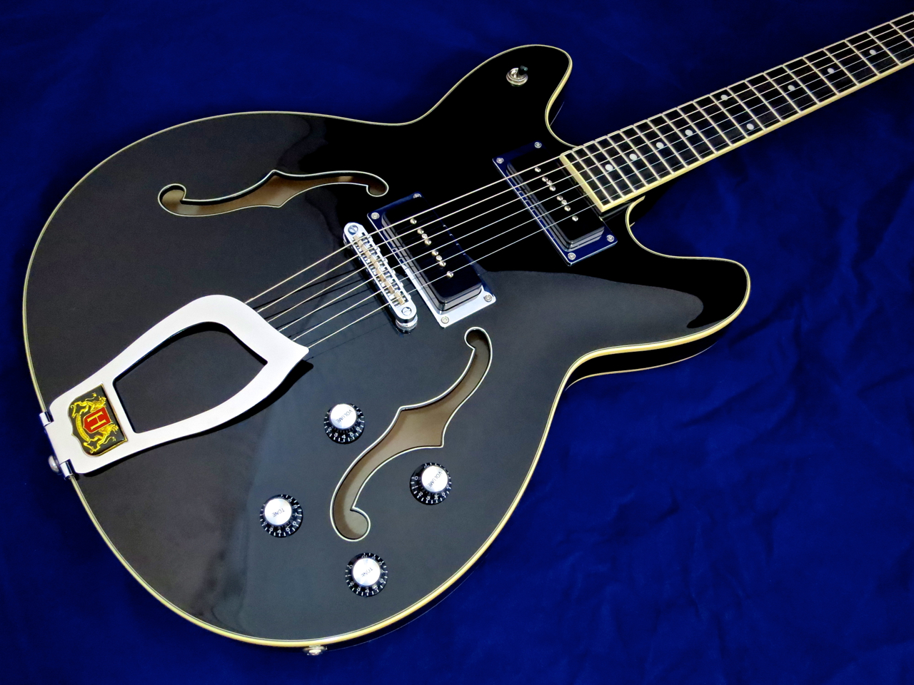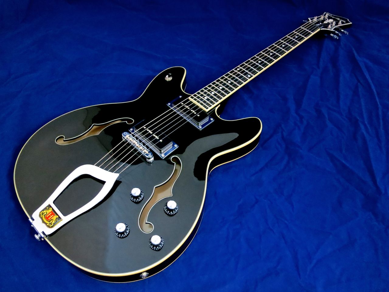 Hagström have chosen a stylish and practical way of installing their own Custom P-50 pickups on this semi: