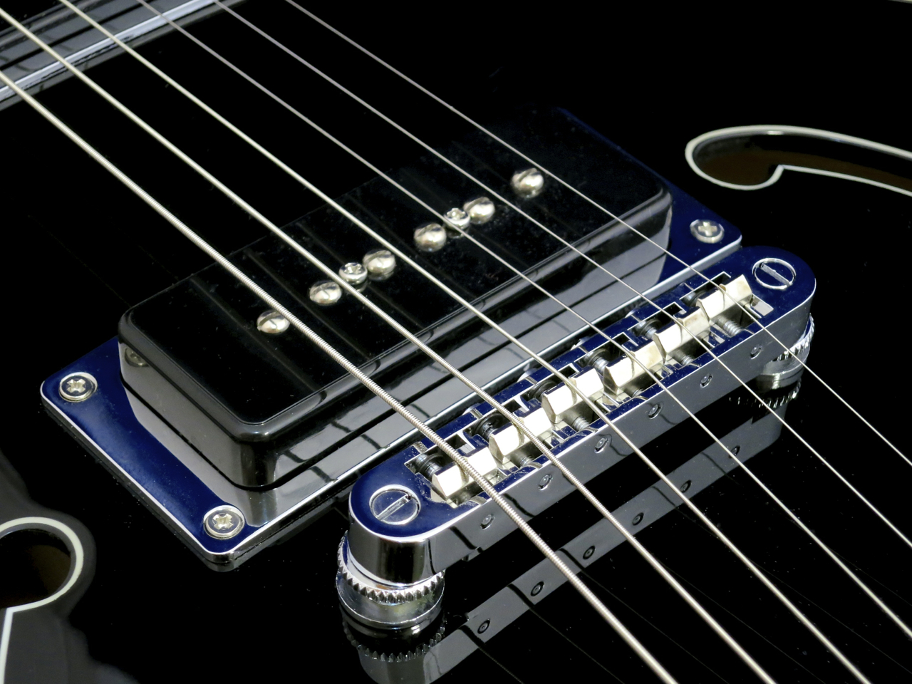 Hagström on päätynyt tällaiseen tyylikkääseen ja käytännölliseen tapaan asentaa omat Custom P-50 -mikrofoninsa puoliakustiseen kitaraan: