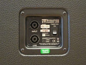 The EBS CL112 -cab sports two Speakon-connectors on its back panel – one for the input signal, and one to link another cabinet to the head. The small Tweeter-switch lets you switch off the cab’s tweeter for authentic vintage-style tones.