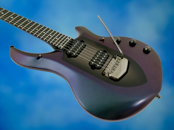The floating vibrato bridge is Music Man’s own, cool design, which features steel saddles equipped with Fishman piezo elements for acoustic-style tones.