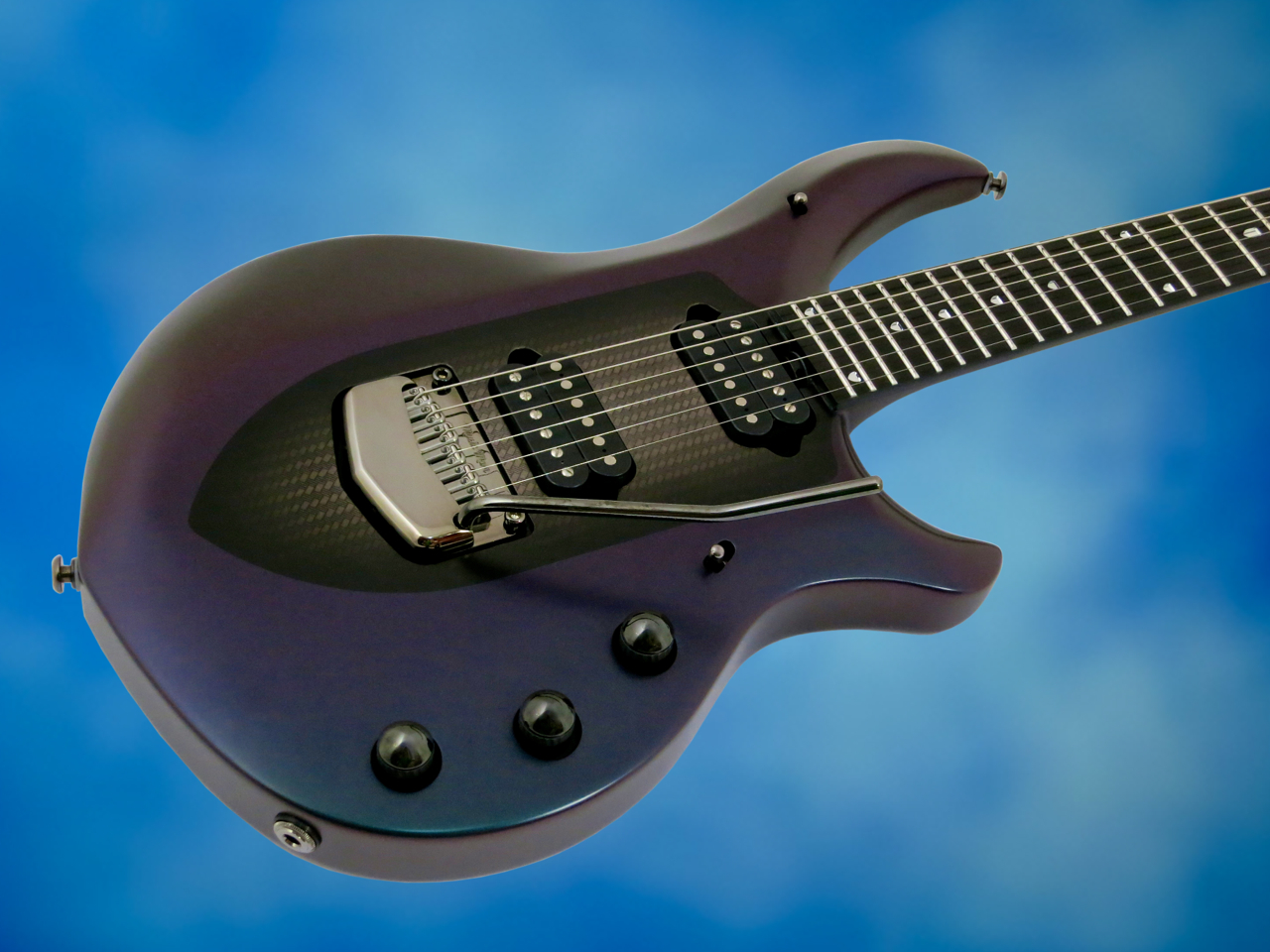 Music Man’s new signature model is a Neck-Through design with a two-octave mahogany neck, and a very smooth neck joint at the 23rd fret.