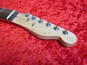 In my opinion the bound headstock on this ML-Factory kit is rather pretty, even though there are a couple of discoloured spots on the mahogany veneer (glue, perhaps?). I left the headstock face au naturel, using oil and wax.