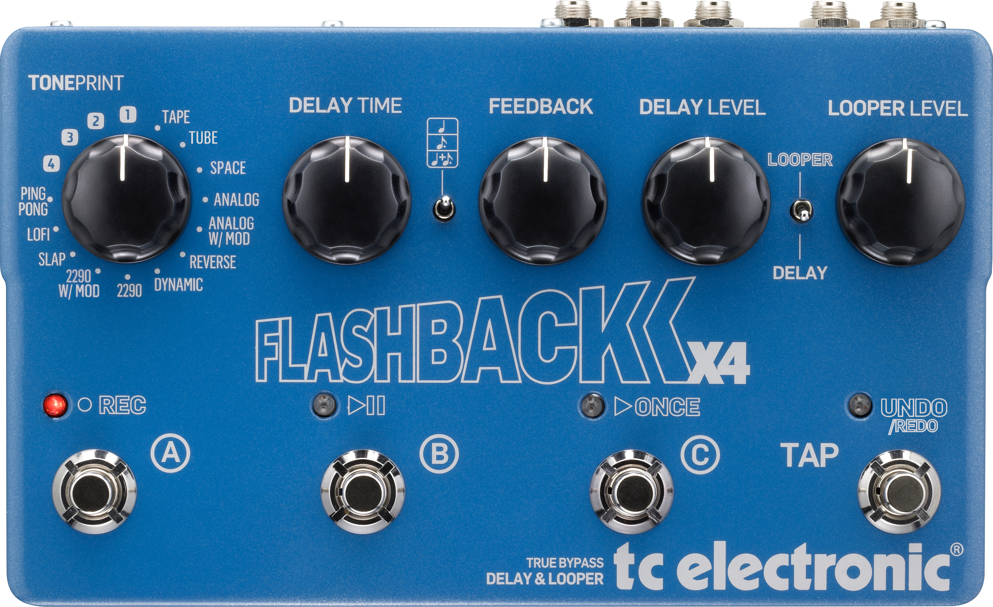 TC Electronicin uusi Flashback X4 (katuhinta noin 260 €) on hyvin suositun pienikokoisen Flashback-pedaalin isoveli. Pikkupedaalin erinomaista äänenlaatua on luonnollisesti pidetty ennallaan myös uutuudessa, mutta X4 tarjoaa sen lisäksi muutaman uuden efektityypin (ja peräti neljä TonePrint-paikkaa), kolme muistipaikkaa omille asetuksille, sekä neljä jalkakytkintä, jotka helpottavat työskentelyä etenkin 40 sekunnin loopperin kanssa.