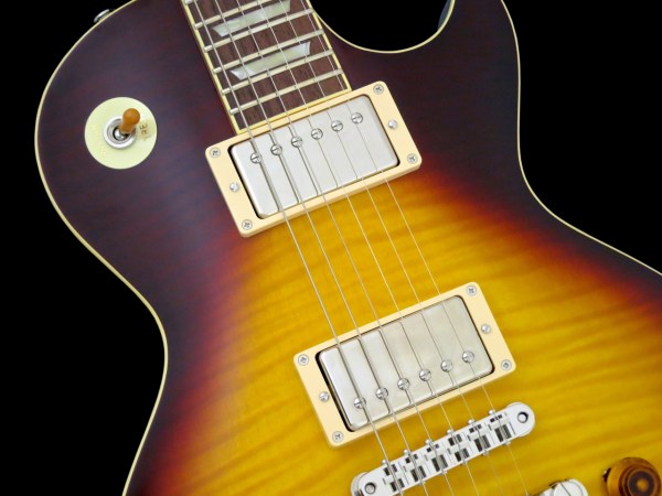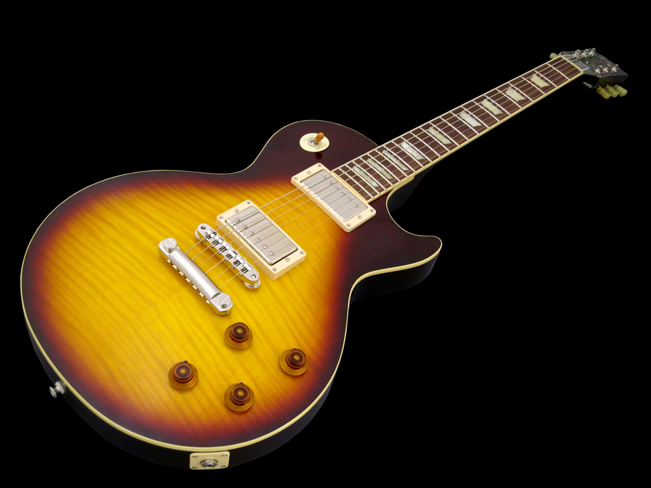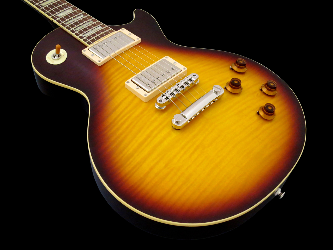 The solid figured maple top looks fantastic in its gloss brown Ice Tea Burst. The guitar comes with a set of Seymour Duncan Pearly Gates humbuckers.
