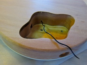 Mielenkiintoinen ratkaisu: kytkimen auko on porattu itse kannen, muttei saarniviilun läpi. Tätäkin täyttyy sitten hoitaa itse, samoin kuin muovikansien upottaminen runkoon.