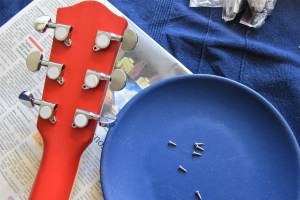 …ja seuraavaksi laitan kielet päälle ja säädän kitaran soittokuntoon…