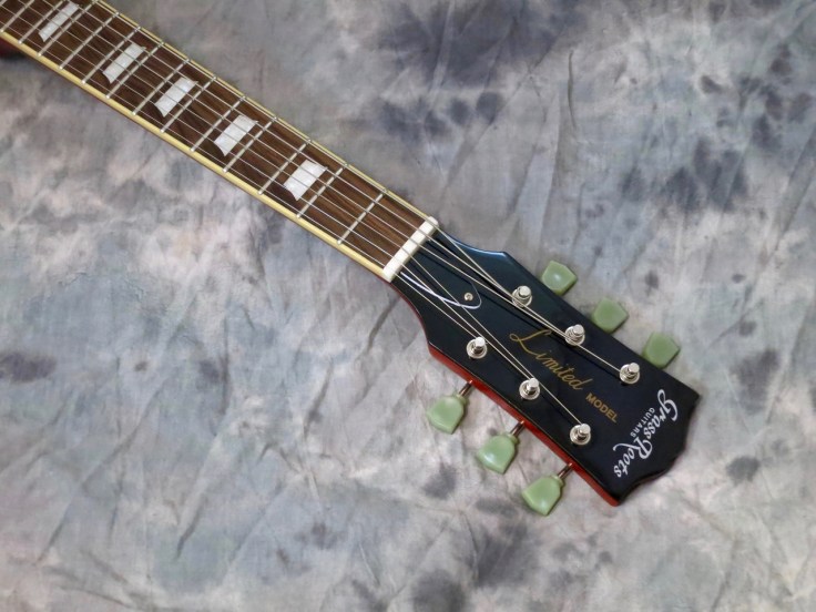 The GrassRoots LP-60S sticks faithfully to the vintage recipe, when it comes to the machine heads, the bound rosewood fretboard (again beautifully grained), and the vintage-size frets, too.