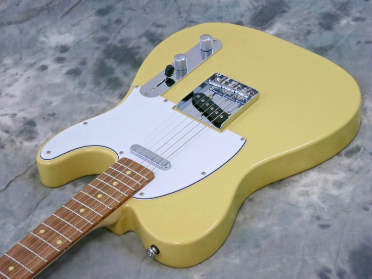 Original Telecasters started out in the early-1950s with punk ash bodies sporting a semi-transparent Butterscotch finish and black pickguards. By the late Fifties the guitar had evolved into the form the GrassRoots TE-50R represents – an alder body with an opaque creamy finish (Antique Blonde) and a three-ply white scratchplate.