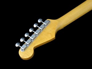 Erinomaiset Gotoh-virittimet näyttävät hieman kuluneilta, mutta ne eivät ole läheskään niin likaiset (tai jopa ruostuneet) kuin joissakin rajummissa relic-kitaroissa.